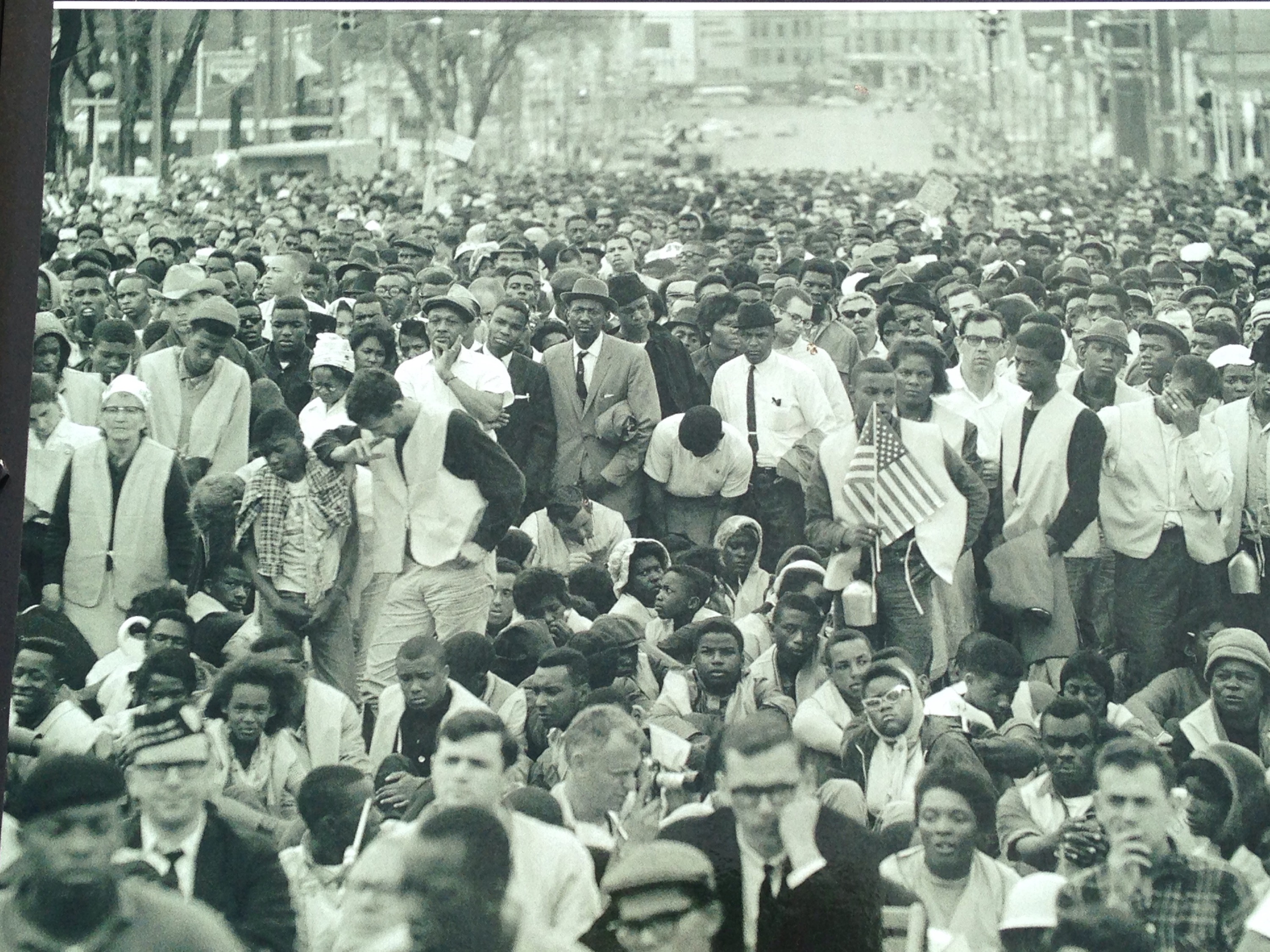 Questo percorso di circa una cinquantina di miglia,e’ diventato una Historic Route,il ponte a Selma (Edmus Pettus Bridge) e’ diventato,suo malgrado,il simbolo di uno scenario di sangue e morte.In questa mattinata afosissima a quasi 40°,ho attraversato il ponte in memoria della domenica di sangue (Nome del primo tentativo).Il martedi e’ il secondo tentativo noto col nome di Turnaround,Doc.MLK fece inversione di marcia e ritorno’ indietro.Grazie ad una sentenza del Giudice Johnsson,la marcia fu riconosciuta come Un diritto costituzionale che lo Stato Alabama non poteva abrogare,quindi al terzo tentativo si raggiunse a piedi Montgomery e finalmente il popolo di colore si iscrisse alle liste Elettorali per poter Votare.