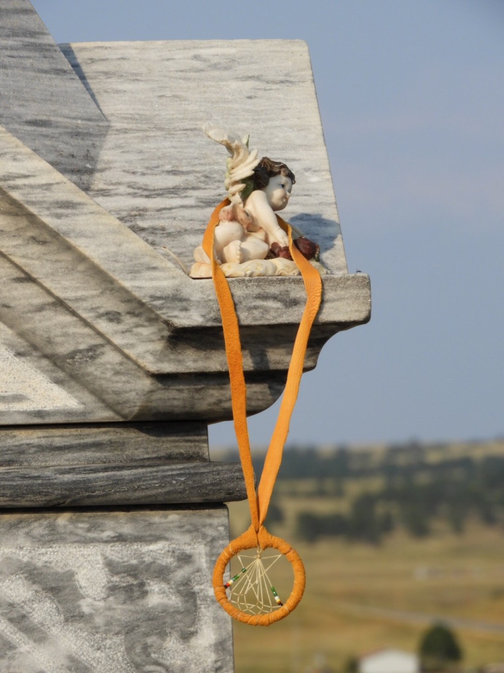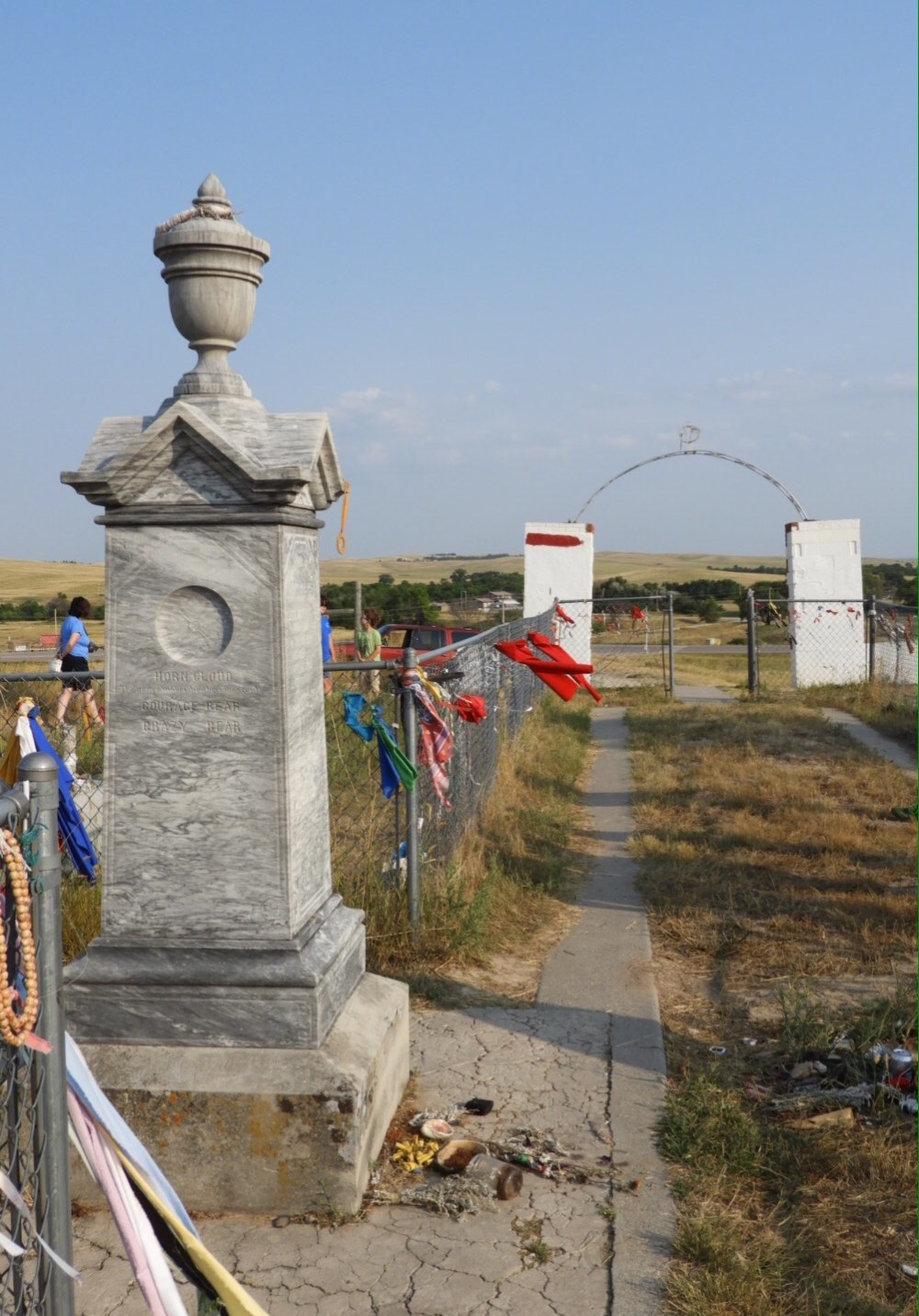La nostra rotta va verso La localita’ di Woundee Knee,dove vado a rendere omaggio al cimitero Sioux,memoria di uno Storico Massacro da parte dell’esercito americano nei confronti di Donne e Innocenti bambini Avvenuto nel Dicembre 1890 non molto distante da dove siamo in questo momento Ovvero a valle del Wounded Knee Creek.
