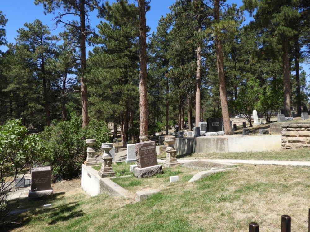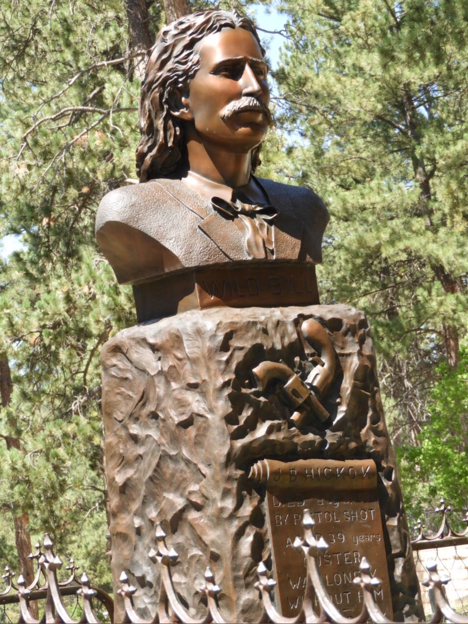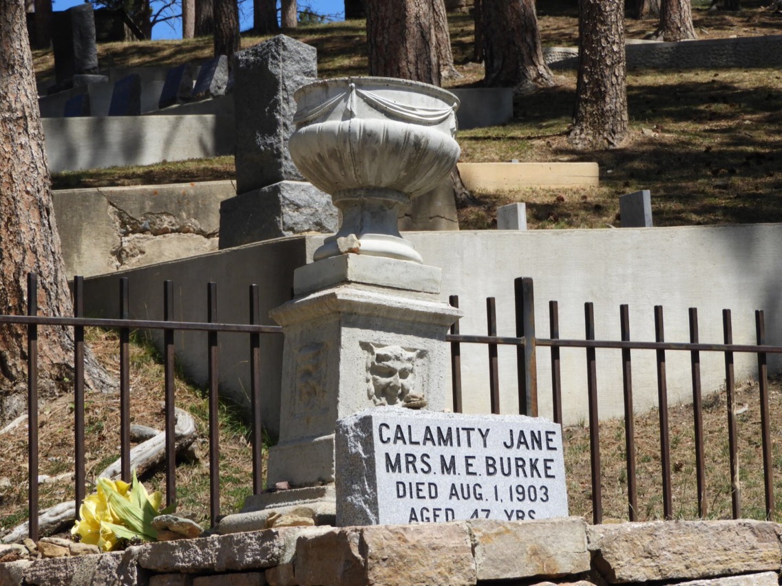 C’e un luogo sacro per Deadwood,posto in cima ad una collina che domina la citta’,il monte Moriah dove si trova il cimitero con la lapide della prima donna Pistolera del West ovvero Calamity Jane (Martha Jane Burke: il vero nome ) sepolta per suo desiderio accanto all’Uomo di cui era follemente innamorata “Wild Bill” !!!(vero nome James Butler kickok) famoso Marshall e giocatore d’azzardo.