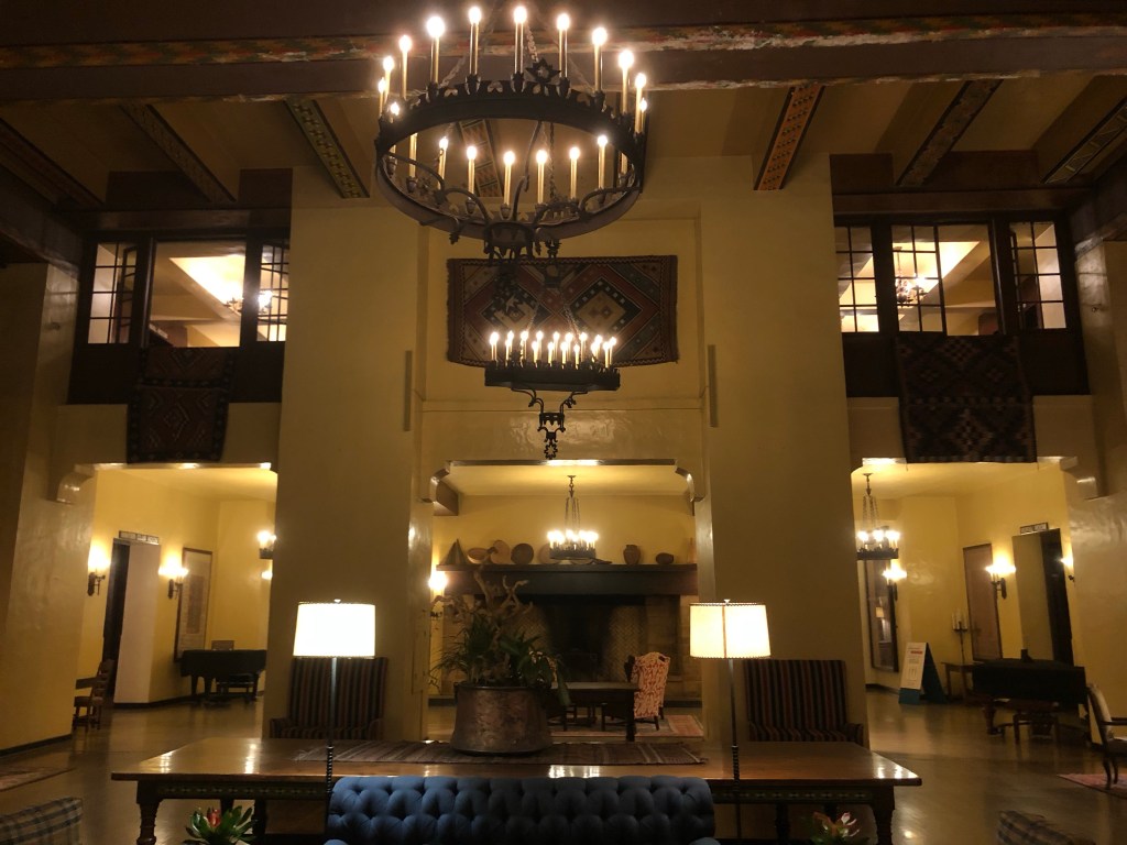 The awahnee Hotel : l’albergo che ha inspirato Stanley Kubrik nel celebre Film “Shining” con jack Nicholson.Sono stati riprodotti i suoi interni in studio per renderlo ancora piu’ pauroso.Situato ad Est dello Yosemite Village e’ veramente Tetro con quella sua architettura.I suoi interni sono Lussuosi e molto curati nei dettagli.The awahnee era il nome dei Nativi Americani presenti sul terrirorio dello Yosemite,i quali ebbero la Funzione di proteggere e Preservare il parco.Una particolarità dei questa tribu’,consisteva nel costruire le proprie tende ( Teepee ) non con le classiche pelli ma Con Rami di Quercia ( Oak ). Nel parco c’e una fedele ricostruzione di un tipico villaggio indiano,costituito da queste Capanne e un piccolo spazio dove discendenti anche di altre tribu’,possono ritrovarsi per raduni con tanto di Danze e Cerimonie.E’ possibile assistere all’interno della Grande Capanna Centale,con al centro un fuoco,ritmi e canti che ti rimandano a scene del mio Film preferito “Balla coi Lupi”.Nel rispetto della Tribu’ e’ vietato scattare Foto e per questo motivo ho inserito un po’ di paesaggio nei dintorni.